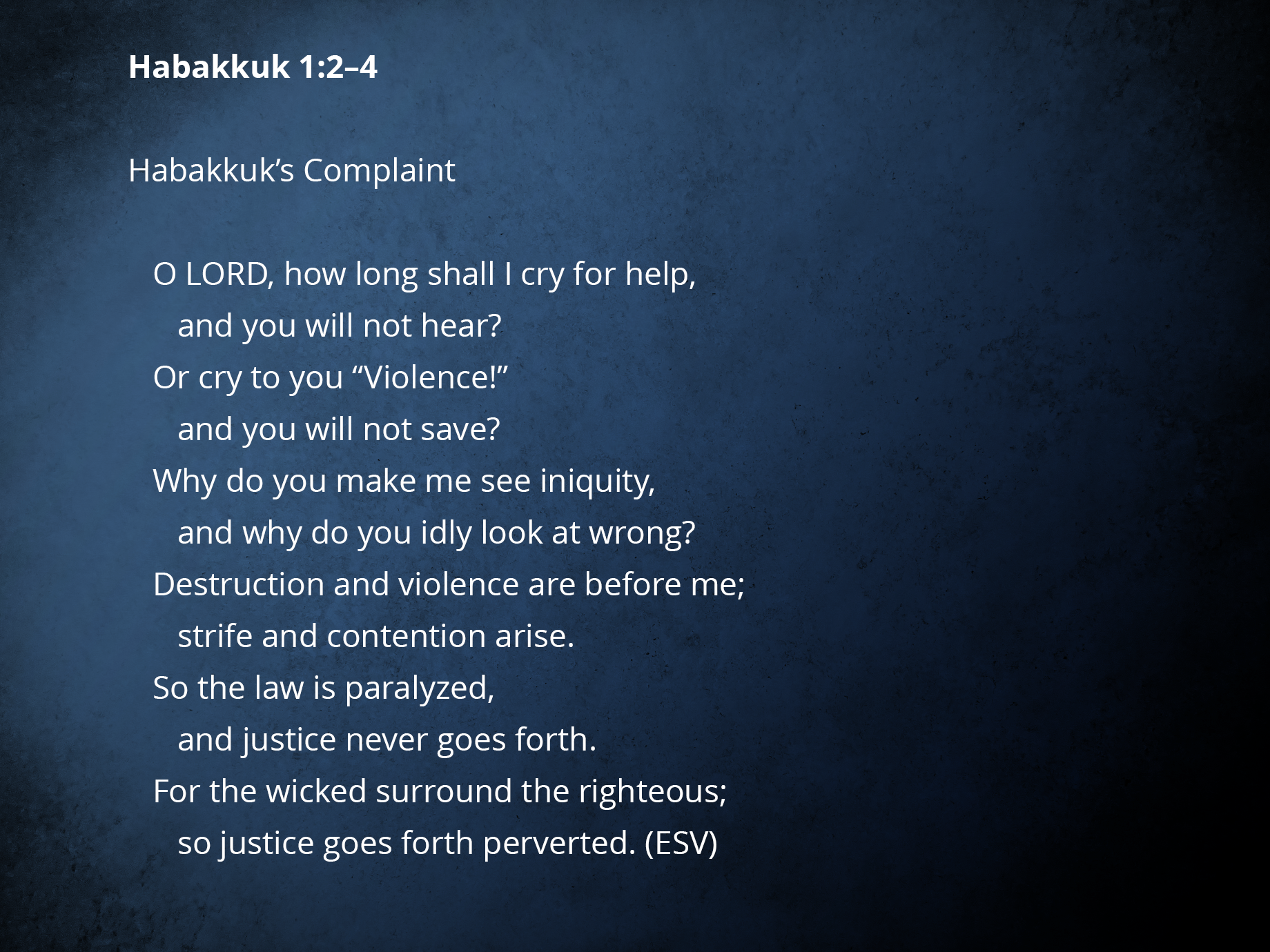 For this series of slides, I chose to go with a gloomy, distressed, and gritty look with a depressing shade of blue, since the book of Habakkuk is one primarily of lamentation.